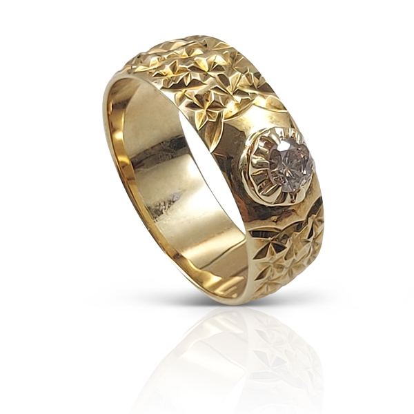 A classic design of engagement ring which is part of our wide line of Lady’s signet rings, where the diamond setting is immersed in the gold.