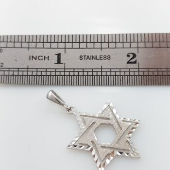 Magen David pendant made of 14k white gold and weighs 0.94 grams.