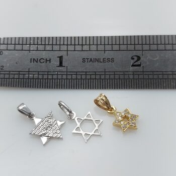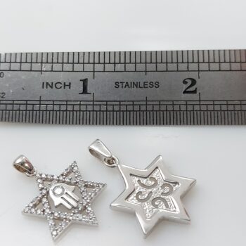 As manufacturers of special orders in the field of Judaica jewelry, we showcase an interesting selection of Star of David shaped pendants that can also be ordered with “Chai”. The addition of the “Chai” symbol hints for good health and resilience from illness and accidents, and thanks to our artist’s jeweler techniques we offer them on a convenient budget.