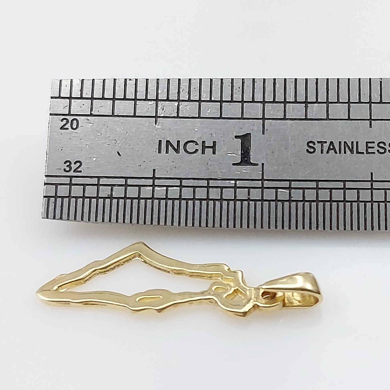 A 1.2 gram gold pendant, designed in the general shape of the borders of the State of Israel. The pendant is a symbol of national pride and a symbol of the resurrection of the Jewish people from the horrors of the Holocaust. Recently, this symbol has become a substitute for the open use of the Star of David among Jews in the Diaspora who fear an anti-Semitic environment.