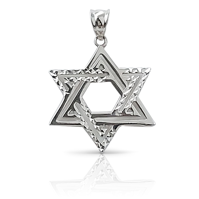 Magen David pendant in an artistic design made of 14k white gold weighing 1.03 grams.